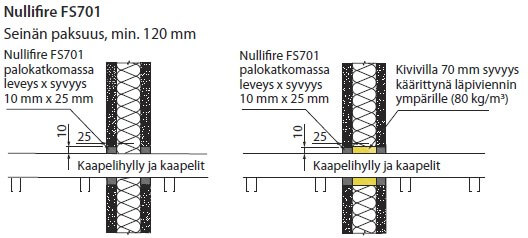 - Laajenee n. 100 % estäen savun ja liekkien leviämisen sauman kautta.