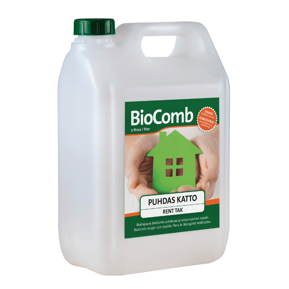 BioComb -Puhdas katto on laajavaikutteinen mikrobikasvuston (home, levä, sammal, jäkälä, sieni) tuho- ja suoja-aine, joka tuhoaa kasvuston ja antaa käsitellyille pinnoille pitkäaikaisen suojan jopa 4-5 vuodeksi eteenpäin käsittelystä. Käsittelyn jälkeen voidaan pintojen puhdistuminen jättää luonnon ( sade ja tuuli) hoidettavaksi. Aine on biohajoava, hajoaa luontoon takaisin 24h sisällä.